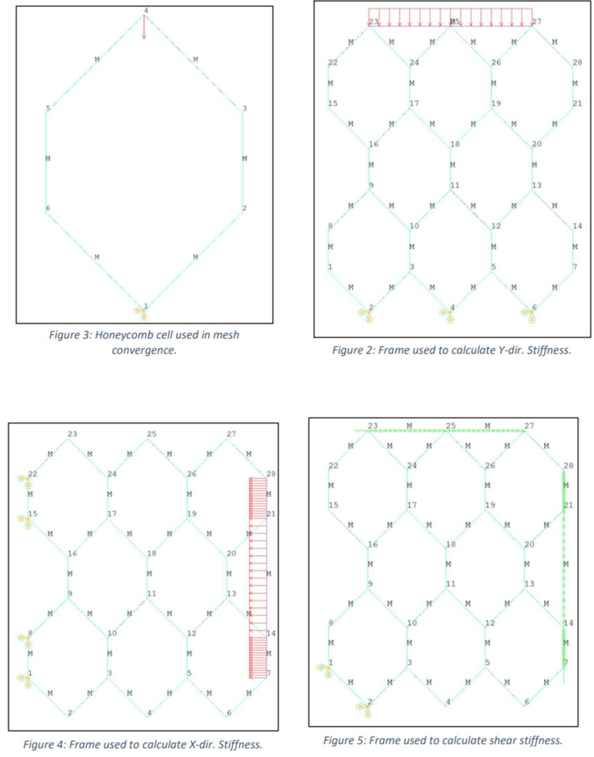 I analyzed a honeycomblike frame in APDL to study the properties of an anisotropic metamaterial.
