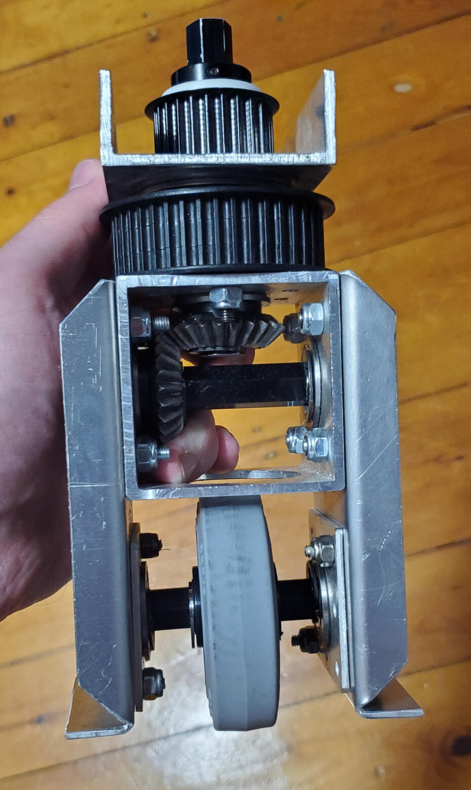 In high school, I designed and assembled this swerve module, which I'm still proud of. All custom parts were fabricated by me.